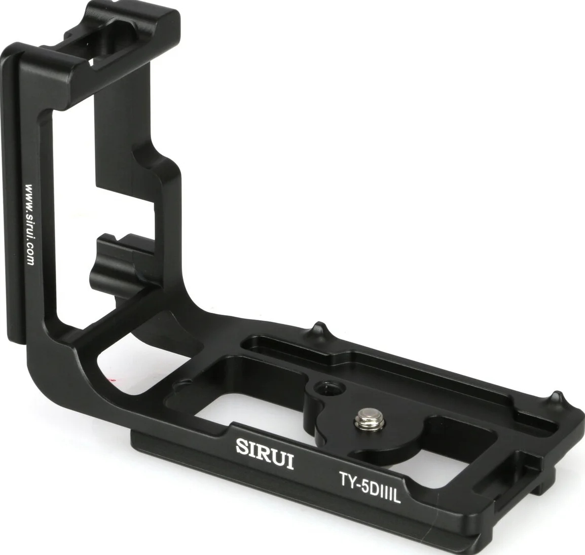 La staffa ad attacco rapido (Arca Swiss) Sirui TY-5DIIIL-BG permette di montare la Canon EOS 5D Mk III insieme al proprio battery grip sia in verticale che in orizzontale, rendendo semplice la transizione fra paesaggio a ritratto; inoltre tutte le porte dell'interfaccia input/output rimangono accessibili.