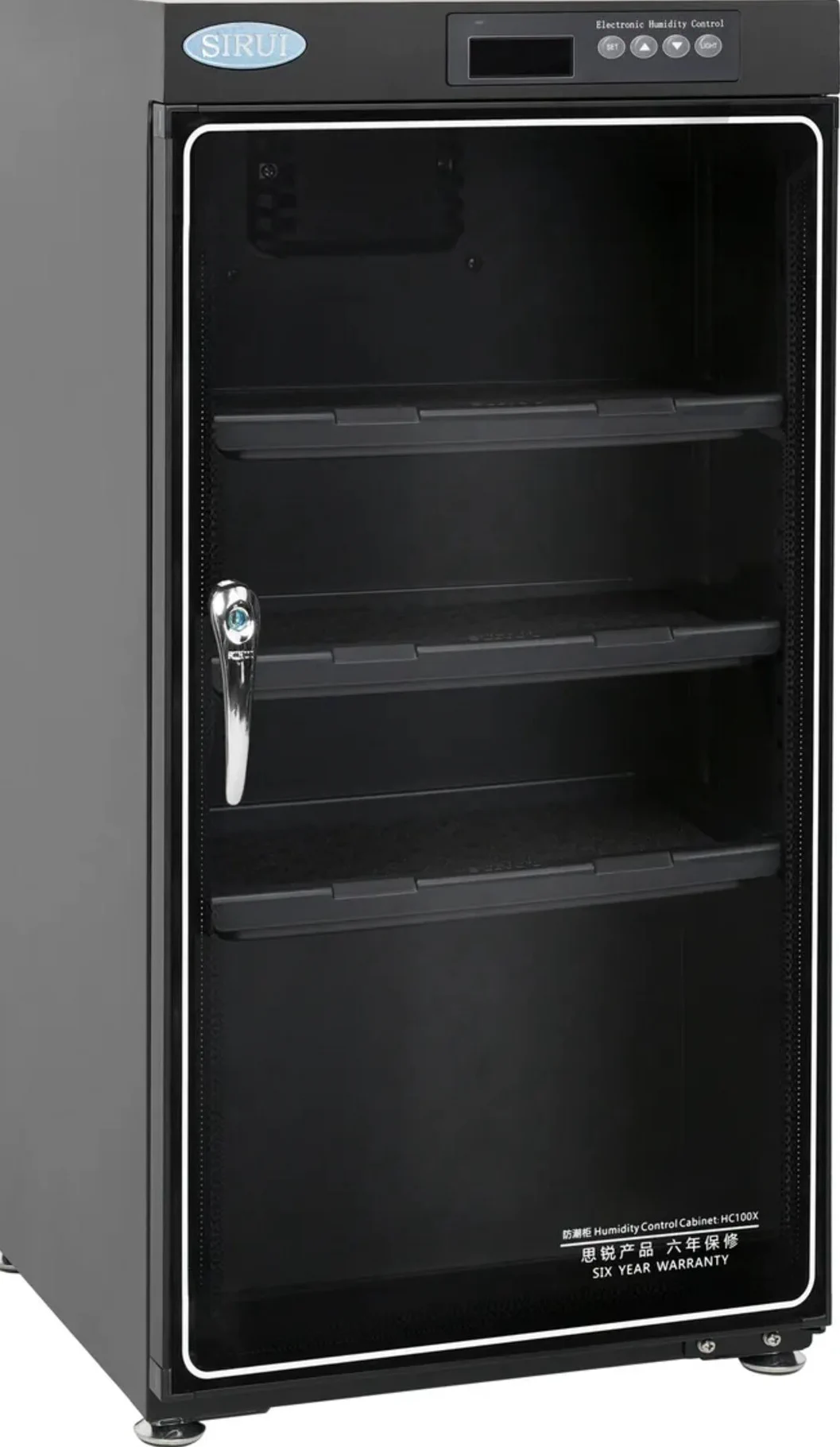 Con dimensioni di soli 36 x 40 x 81,1 cm, l’armadio elettronico con controllo automatico HC100X di Sirui ha dimensioni compatte che lo rendono adatto alla maggior parte degli spazi. Il design leggero lo rende facile da spostare da un luogo all’altro. L’armadio ha una capacità di 100 litri, dove è possibile riporre obiettivi, oggetti d’antiquariato e altri articoli che si desidera tenere al riparo dall’umidità.