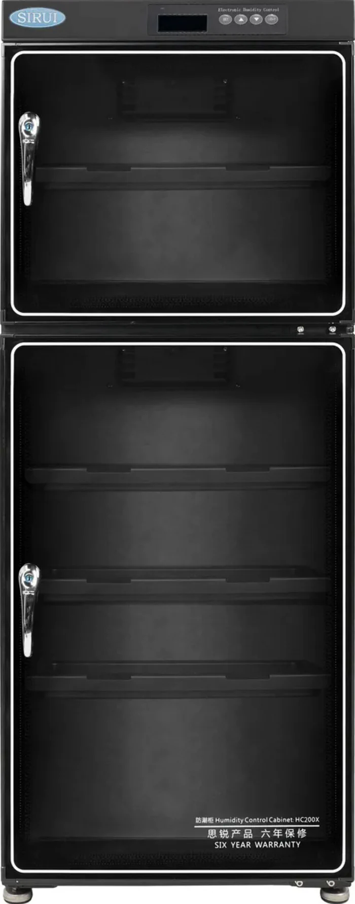 Con dimensioni di soli 42 x 45 x 119,4 cm, l’armadio elettronico con controllo automatico HC200X di Sirui ha una capacità di 200 litri, dove è possibile riporre obiettivi, oggetti d’antiquariato e altri articoli che si desidera tenere al riparo dall’umidità.