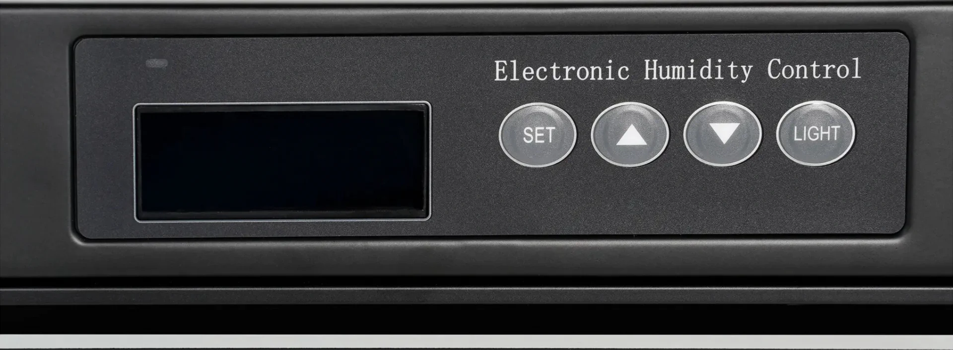 All’interno dell’armadio sono installati sensori ad alta precisione per misurare i valori di temperatura e umidità. Questi valori vengono visualizzati in tempo reale su un display digitale integrato, dotato di tre pulsanti operativi.