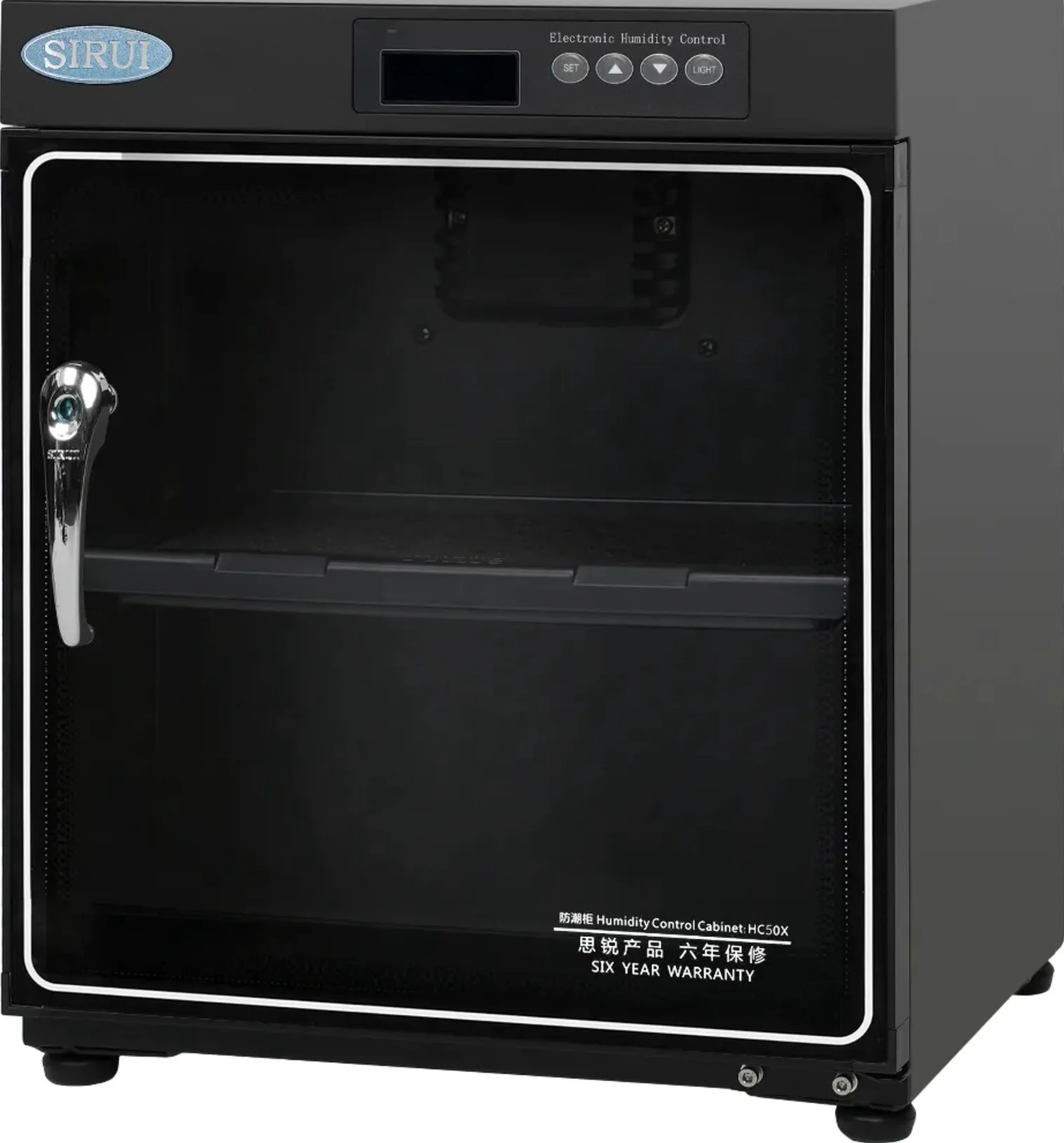 Con dimensioni di soli 32 x 40 x 48 cm, l’armadio elettronico con controllo automatico HC50X di Sirui ha dimensioni compatte che lo rendono adatto alla maggior parte degli spazi. Il design leggero lo rende facile da spostare da un luogo all’altro. L’armadio ha una capacità di 50 litri, dove è possibile riporre obiettivi, oggetti d’antiquariato e altri articoli che si desidera tenere al riparo dall’umidità.