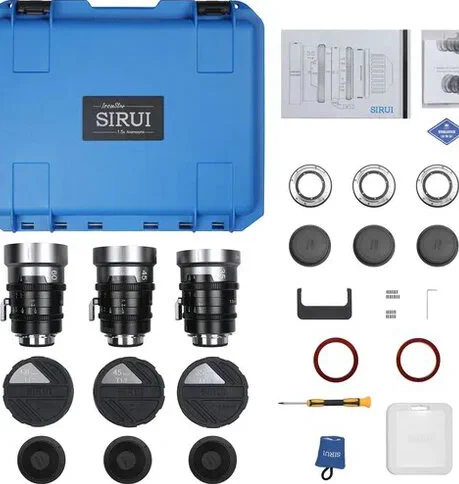Cattura immagini ampie e cinematografiche esaltate da riflessi blu naturali utilizzando il set di obiettivi anamorfici full frame IronStar Series 35, 45 e 60 mm T1.9 di Sirui. Questo set include obiettivi da 35, 45 e 60 mm con polarizzatore circolare e filtro a densità neutra variabile.