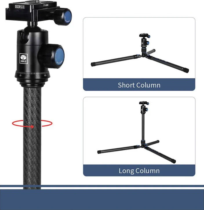 Capovolgete la colonna centrale per le riprese a basso angolo e macro.