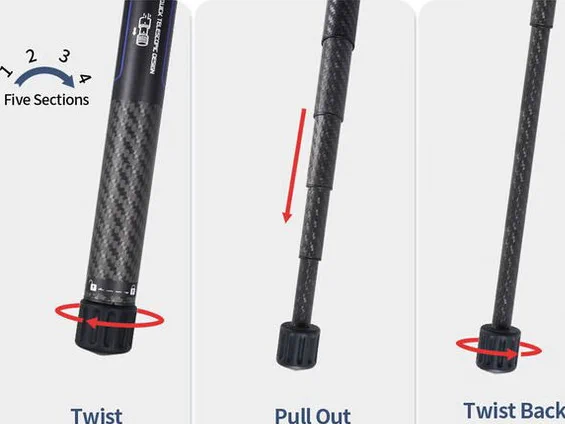 Per la colonna centrale staccabile, torcere la parte superiore della colonna centrale per ottenere una sezione corta della colonna per le riprese a terra.