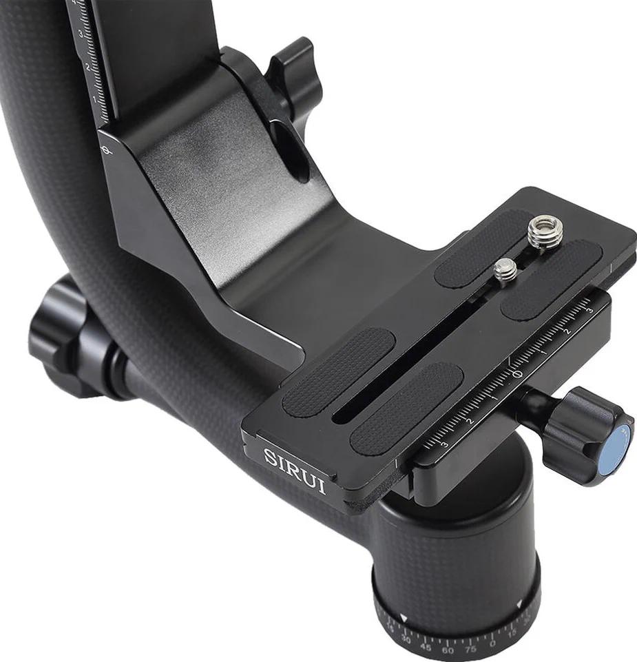 La testa gimbal PH-20 della Sirui è un’ottima soluzione per il problema della ripresa di soggetti in movimento con un lungo teleobiettivo. Le teste a sfera e quelle a 3 vie possono essere ingombranti in situazioni di movimento rapido, ma la testa gimbal fa rende apparentemente prive di peso le fotocamere e le lenti pesanti e consente di rilevare in modo fluido e preciso soggetti in rapido movimento.La fibra di carbonio multistrato nel braccio e la lega di alluminio nella staffa a L rendono il PH-20 molto restistente, il carico massimo arriva fino a 20 kg, ma pesa solo 1,09 kg. La fibra di carbonio riduce anche le vibrazioni e offre una migliore tolleranza per i cambiamenti di temperatura.Con la fotocamera e l’obiettivo perfettamente bilanciati sulla testa gimbal, non è necessario bloccare alcun comando. Puoi spostare rapidamente e facilmente la tua videocamera in qualsiasi direzione con poca forza. Infatti, un sistema correttamente allineato può essere controllato con un dito.