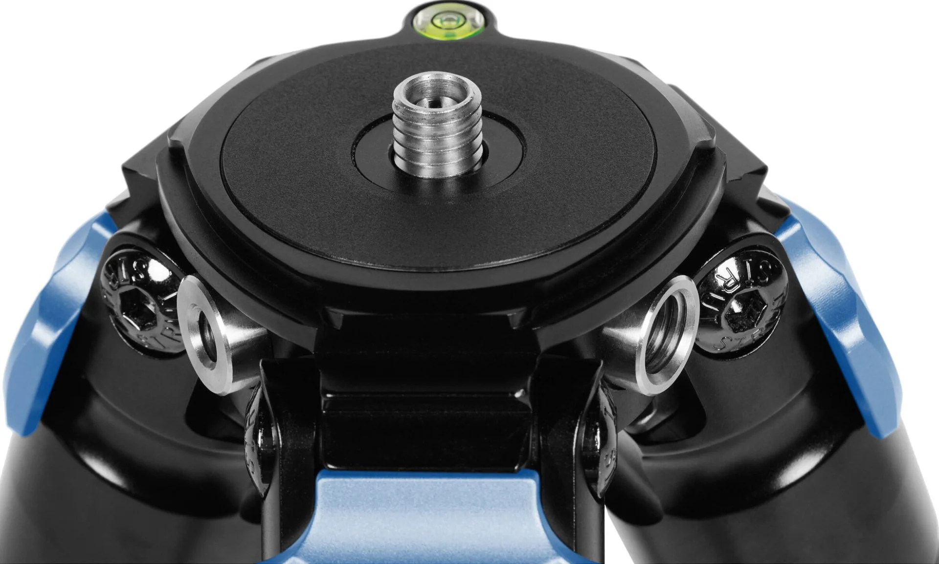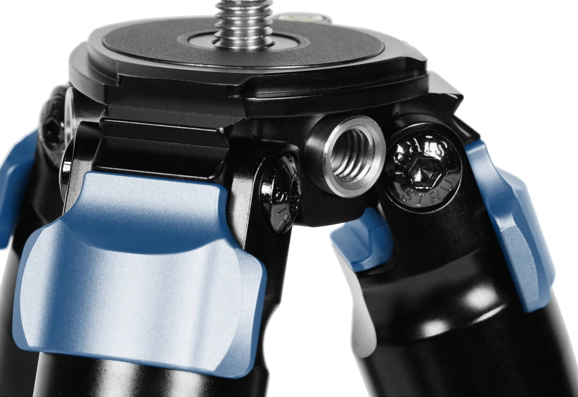 L’L-324F è dotato di un gancio di zavorra per aggiungere ulteriore stabilità e i piedini in gomma della gamba si rimuovono per rivelare punte d’acciaio per la trazione su superfici scivolose. L’apice della gamba è dotato di un attacco per accessori femmina da 1/4″-20 e di un attacco per accessori da 3/8″-16 per personalizzare la configurazione. Inoltre, la vite di montaggio della testa, caricata a molla, si converte da 3/8″-16 a 1/4″-20, adattandosi praticamente a qualsiasi testa di treppiede.