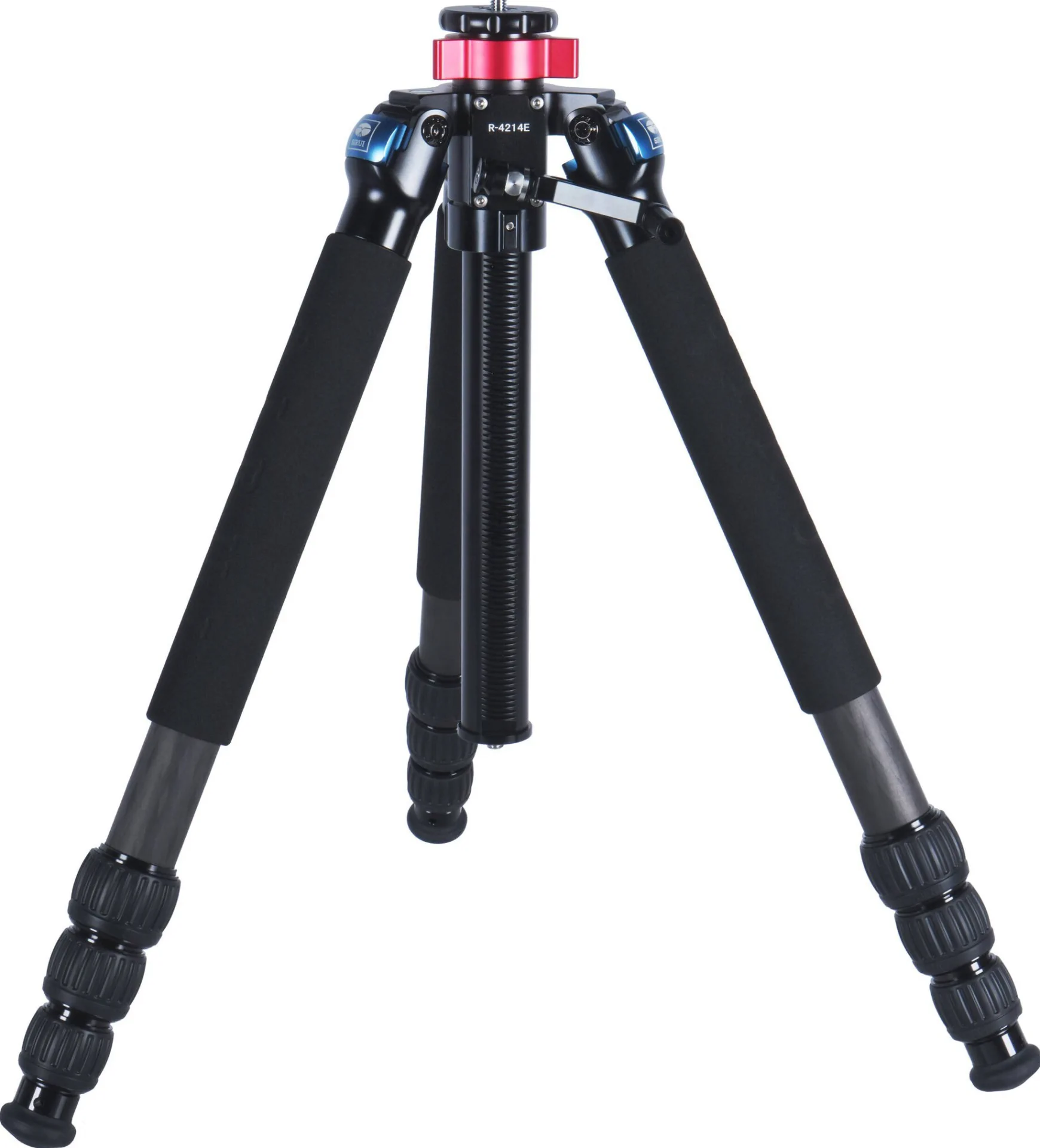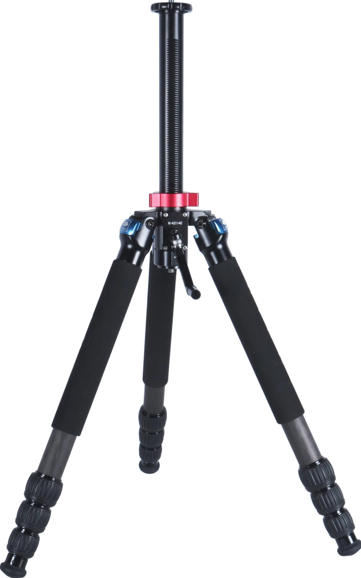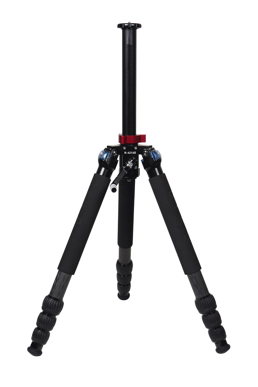 Le gambe in fibra di carbonio hanno una diffusione indipendente e tre posizioni di bloccaggio per una varietà di altezze e per aiutare a raggiungere il livello su terreni irregolari. Ogni gamba ha una copertura imbottita per una migliore presa. Le gambe del treppiede hanno una scala graduata con incrementi di 5 cm per scenari che richiedono regolazioni precise dell’altezza. I piedini in gomma sono rimovibili e sono inclusi un set di 3 piedini a punta, in modo che l’R-4214E possa avere trazione su qualsiasi tipo di superficie.