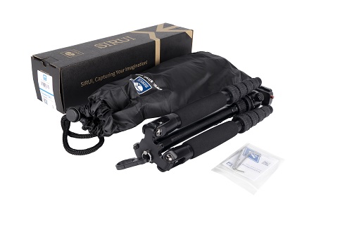 I piedini in gomma consentono al treppiede di stare saldamente su qualsiasi superficie. Fanno parte dello standard SIRUI anche le maniglie di protezione dal freddo, così come la pratica borsa per il trasporto.