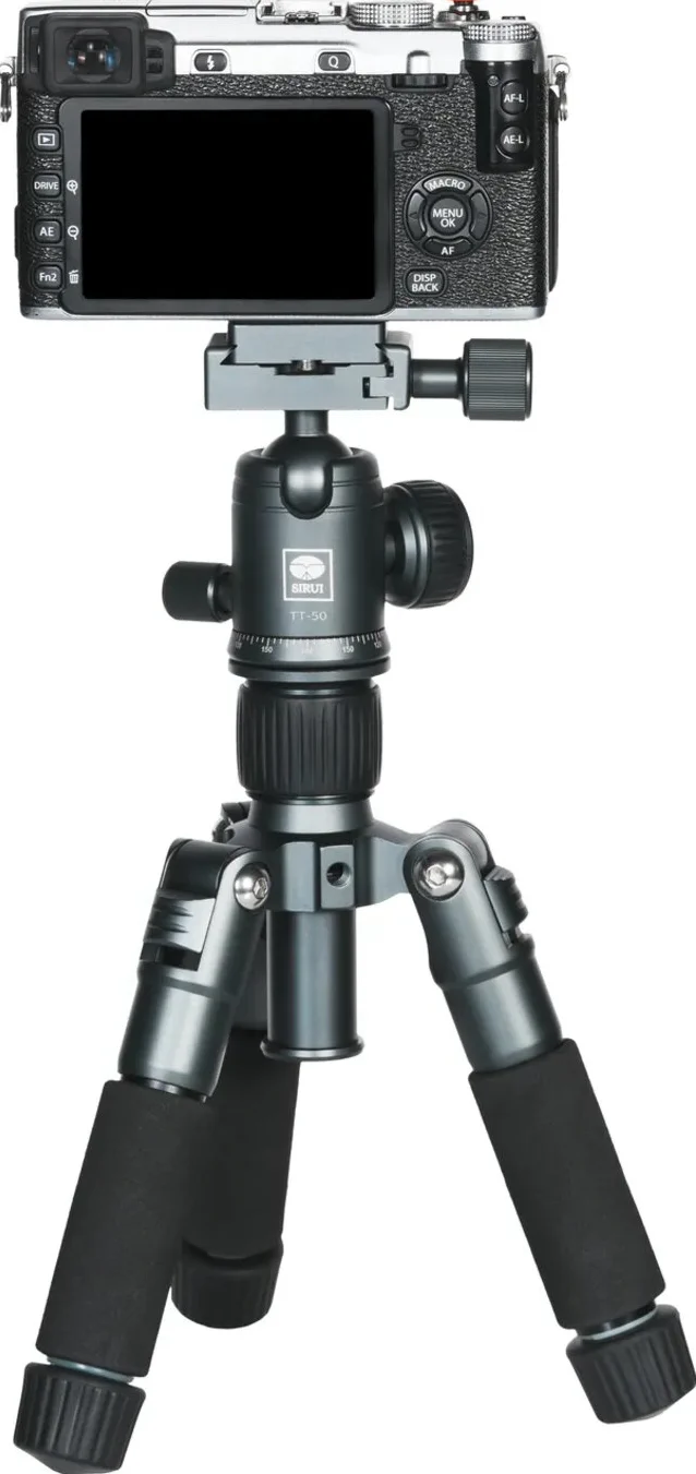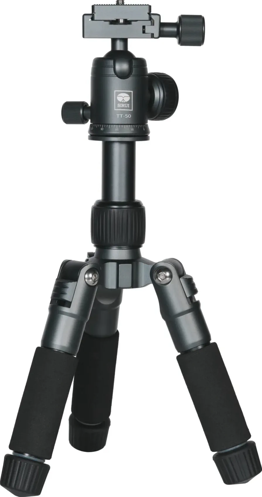 Il kit treppiede da tavolo in lega di alluminio Sirui TT-50 include un treppiede e una testa a sfera leggera. Il peso dell’intero kit è di soli 0,8 kg, il che lo rende davvero compatto e portatile. Questo kit treppiede funziona bene con telefoni, fotocamere mirrorless, DSLR o altri accessori. È inoltre adatto per riprese da tavolo, arrampicate, viaggi, riprese all’aperto o live streaming.