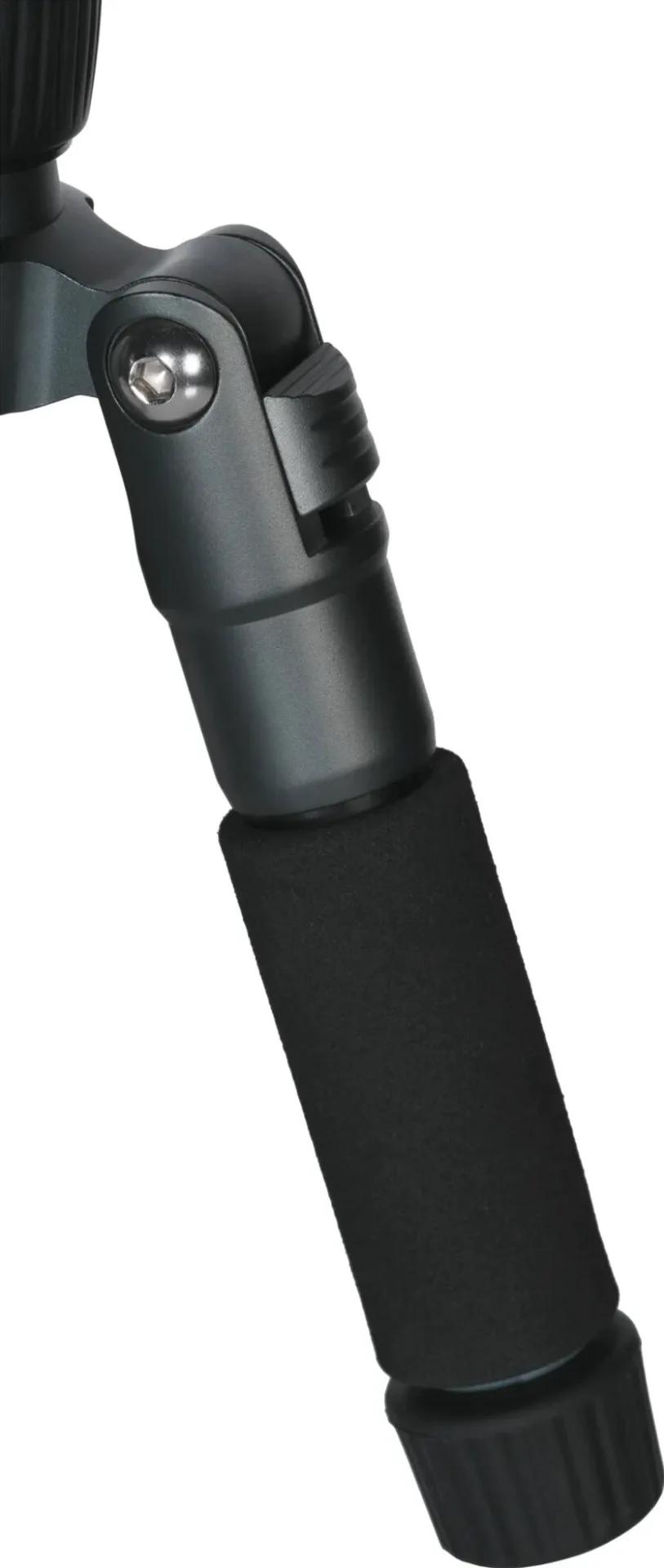 La testa a sfera ruota liberamente in tutte le direzioni. Dispone anche di una piastra a sgancio rapido con chiusura a rotazione, livella a bolla e chiusure a rotazione.