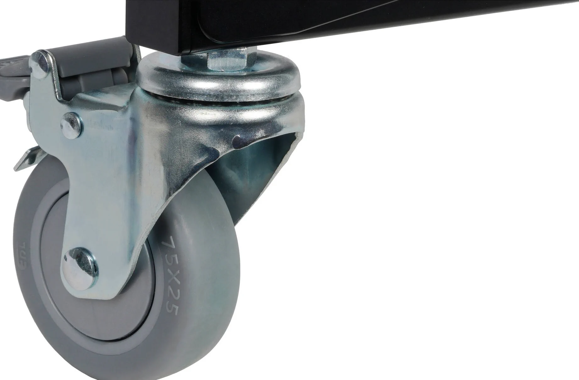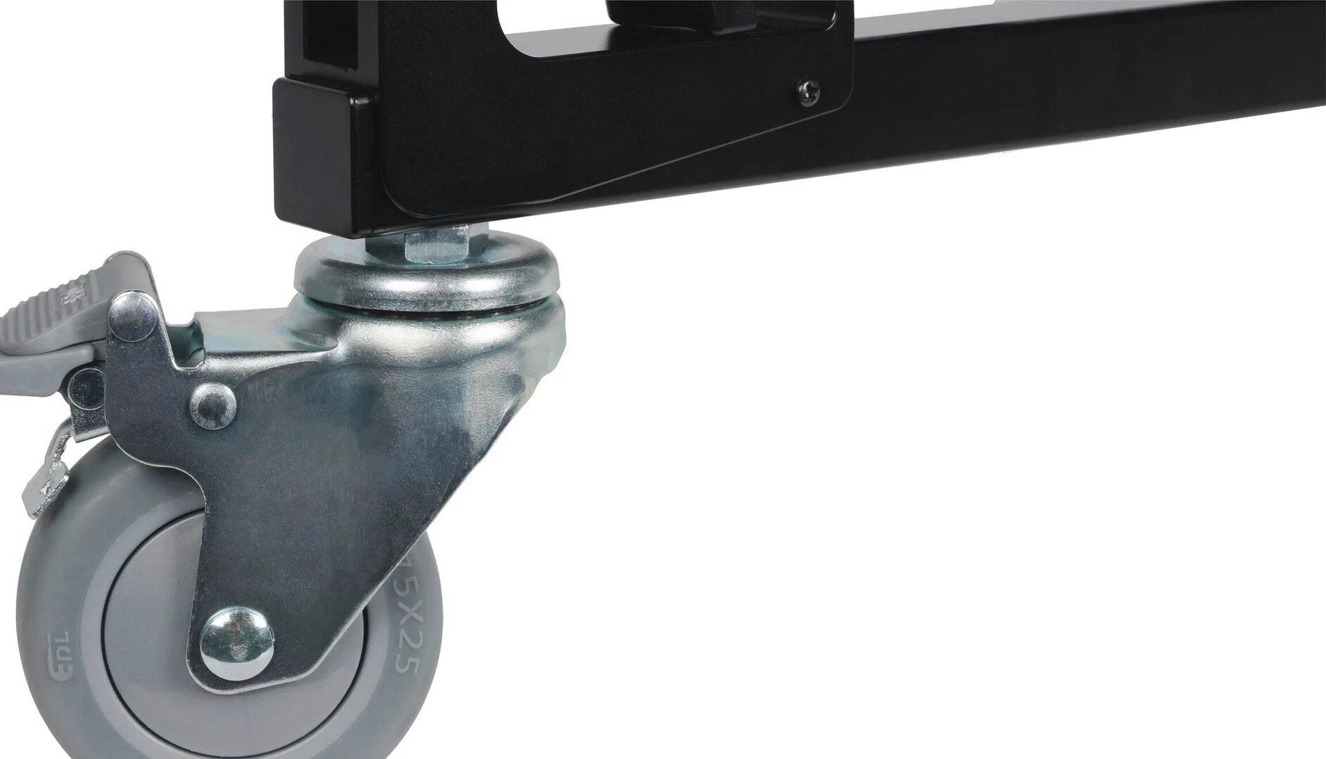 Il DT-06 offre un funzionamento fluido, silenzioso e veloce tramite le ruote in gomma che possono anche essere bloccate per fissare il dolly e il treppiede in un’unica posizione.